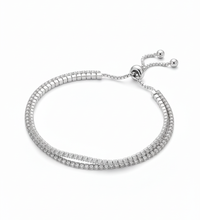 Elevate your elegance with our Fine Silver Double Layer Tennis Bracelet, a masterpiece of timeless sophistication. Crafted from premium 925 sterling silver, this exquisite bracelet features two parallel rows of brilliant-cut cubic zirconia stones, meticulously set to create an effortless sparkle. Designed for both everyday wear and special occasions, its adjustable sliding clasp ensures a perfect fit for any wrist. Whether worn alone for a minimalist statement or layered for a bold, luxurious look, this bracelet is a must-have addition to your jewelry collection